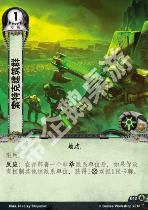 :在你部署一个非太空死灵派系单位后,如果你没有控制其他该派系单位,获得1资源或抓1张卡牌。